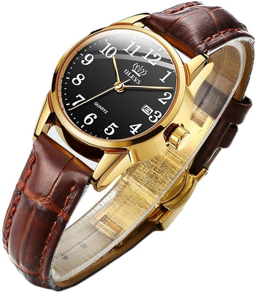 Amazon Com Olevs Women Wrist Watch Brown Leather Casual Classic Small Black Face Number Easy Reader Analog Quartz Dress Waterproof 3atm Wristwatch Olevs Watches