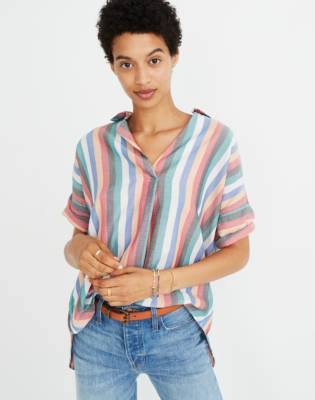 Women S Courier Button Back Shirt In Festival Stripe Madewell