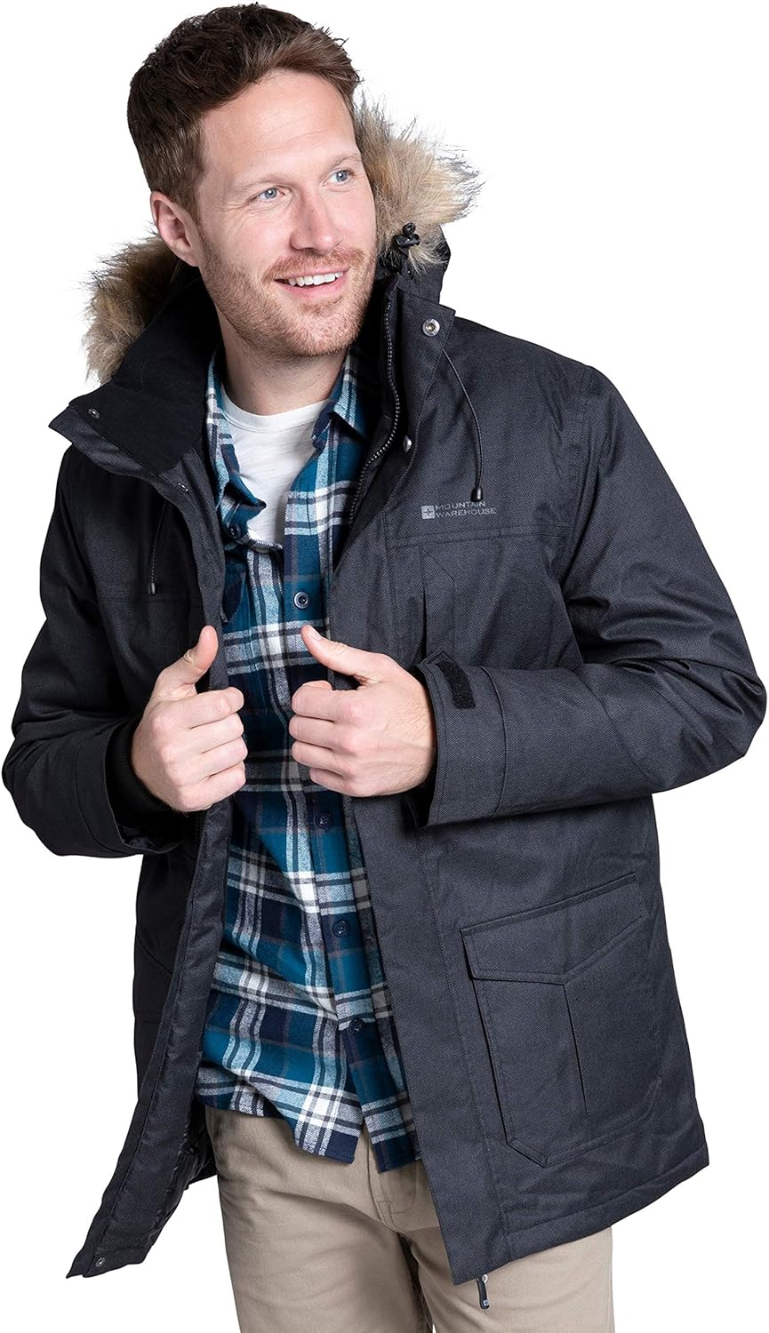 Mountain Warehouse Gorge Men S Long Jacket Winter Rain Jacket Waterproof Breathable Lightweight Faux Fur Hood Practical Warm Jacket For Cold Winter Weather Amazon De Bekleidung