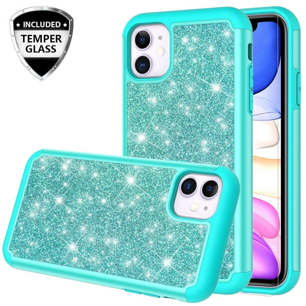 Apple Iphone 11 Case Cute Girls Women W Tempered Glass Screen Protector Heavy Duty Protective Phone Cover Case For Iphone 11 Glitter Teal Walmart Com Walmart Com
