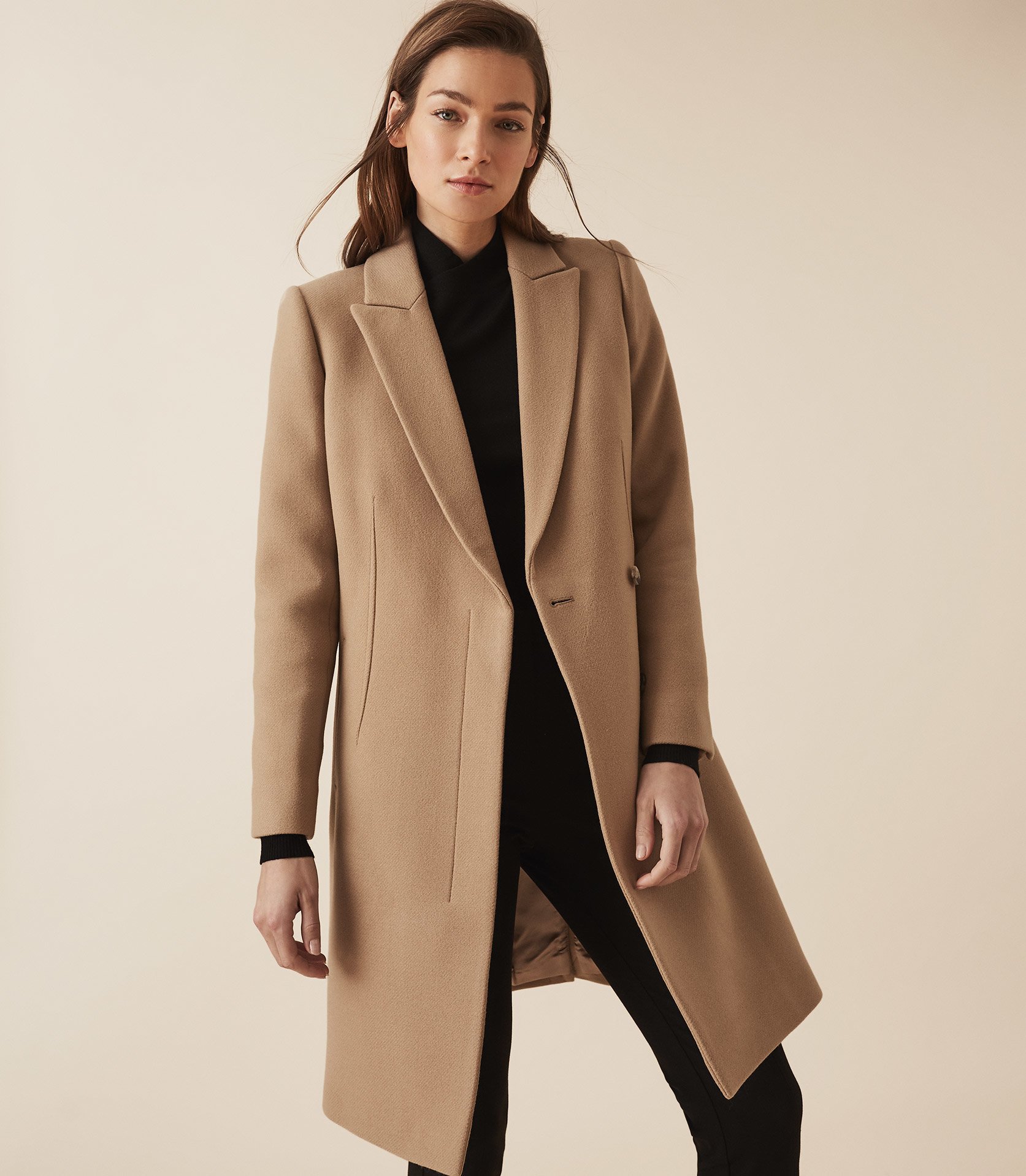 Sicily Camel Wool Blend Mid Length Coat Reiss
