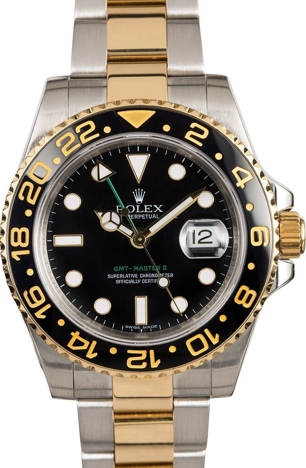 Rolex GMT Master eignet sich für alle die beruflich oder privat zwischen den Zeitzonen pendeln. Bei der Rolex GMT-Master II ist das nicht anders. Rolex 18K Yellow Gold 40mm Ceramic Bezel GMT Master.