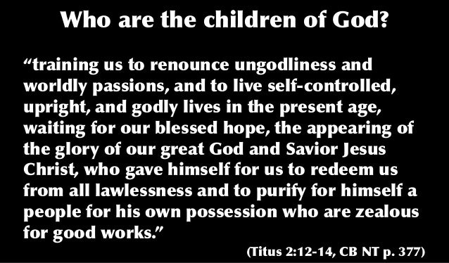 Members lived together in communes and banded together around the concept that an apocalypse was coming and that they were martyrs with the power to save the world from the Antichrist. For all who are led by the Spirit of God are children of God Romans 814 NLT. For ye are all the children of God by faith in Christ Jesus We see that it is faith in Jesus Christ that makes us children of God.